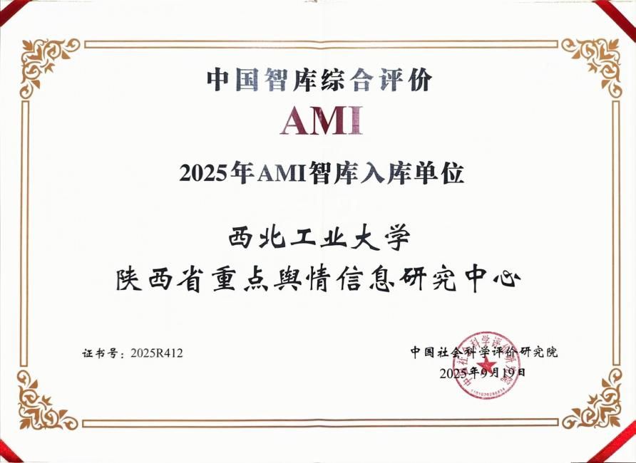 近日,中国社会科学评价研究院主办的第八届中国智库建设与评价高峰论坛在北京举行。会上公布了“中国智库综合评价研究项目(2025)AMI智库入库名单”及特色案例名单。金年会官网陕西省重点舆情信息研究中心成功入选AMI智库入库单位。