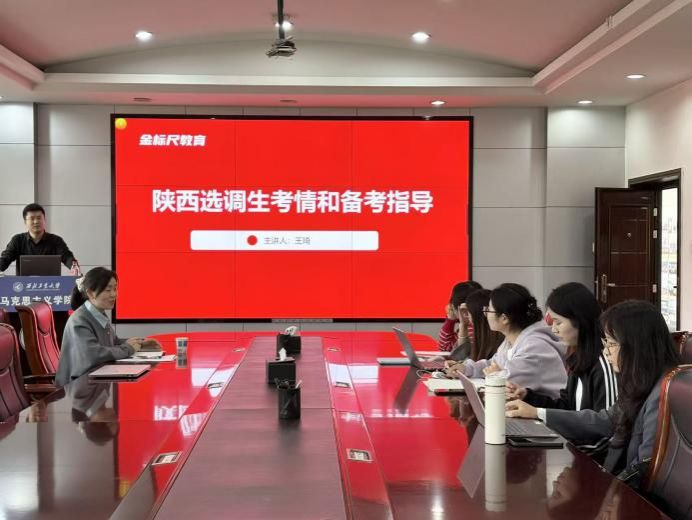 为帮助学生深入了解选调生考试政策,提前谋划和优化备考策略,10月13日jinnianhui金年会·首页官网邀请金标尺教育机构专业讲师王琦在学院楼208会议室举办“陕西选调生考情和备考指导”专题讲座。讲座由硕士生辅导员王换主持,学院硕士研究生参加。