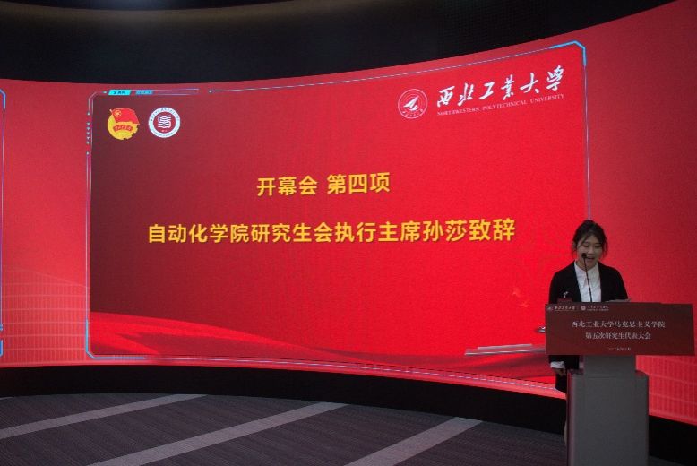 开幕会第四项,自动化学院研究生会执行主席孙莎致辞,她代表自动化学院研究生会向大会的顺利召开致以热烈祝贺,并表达了对于未来双方能秉持互学互鉴的理念,在学术交流、文体共建、实践服务等领域开展更多深度联动的期待。