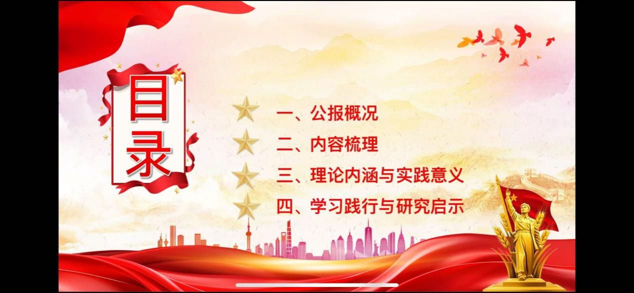 读书会伊始,jinnianhui金年会·首页官网博士生韩嫣婕围绕党的二十届四中全会公报作分享,从公报概况、内容逻辑、理论实践意义及学习践行四维度展开讲解,详解“六个坚持”指导原则、“七维提升”目标等核心内容。作为马克思主义理论专业博士生,她呼吁各位同学聚焦核心议题深化研究、践行青年担当,以学术自觉回应时代需求,为推进中国式现代化贡献青春力量。