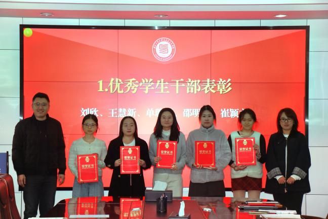 会议伊始,举行优秀学生干部表彰暨新任兼职辅导员聘任仪式。会上表彰刘欣、王慧新、单璐玉、邵明岚、崔颖文表现突出的优秀学生干部,肯定其履职担当与工作成效;聘任谢琳、荆迎春、杨思羽、张雅琦为新任兼职辅导员,为学院学工队伍注入新鲜血液。