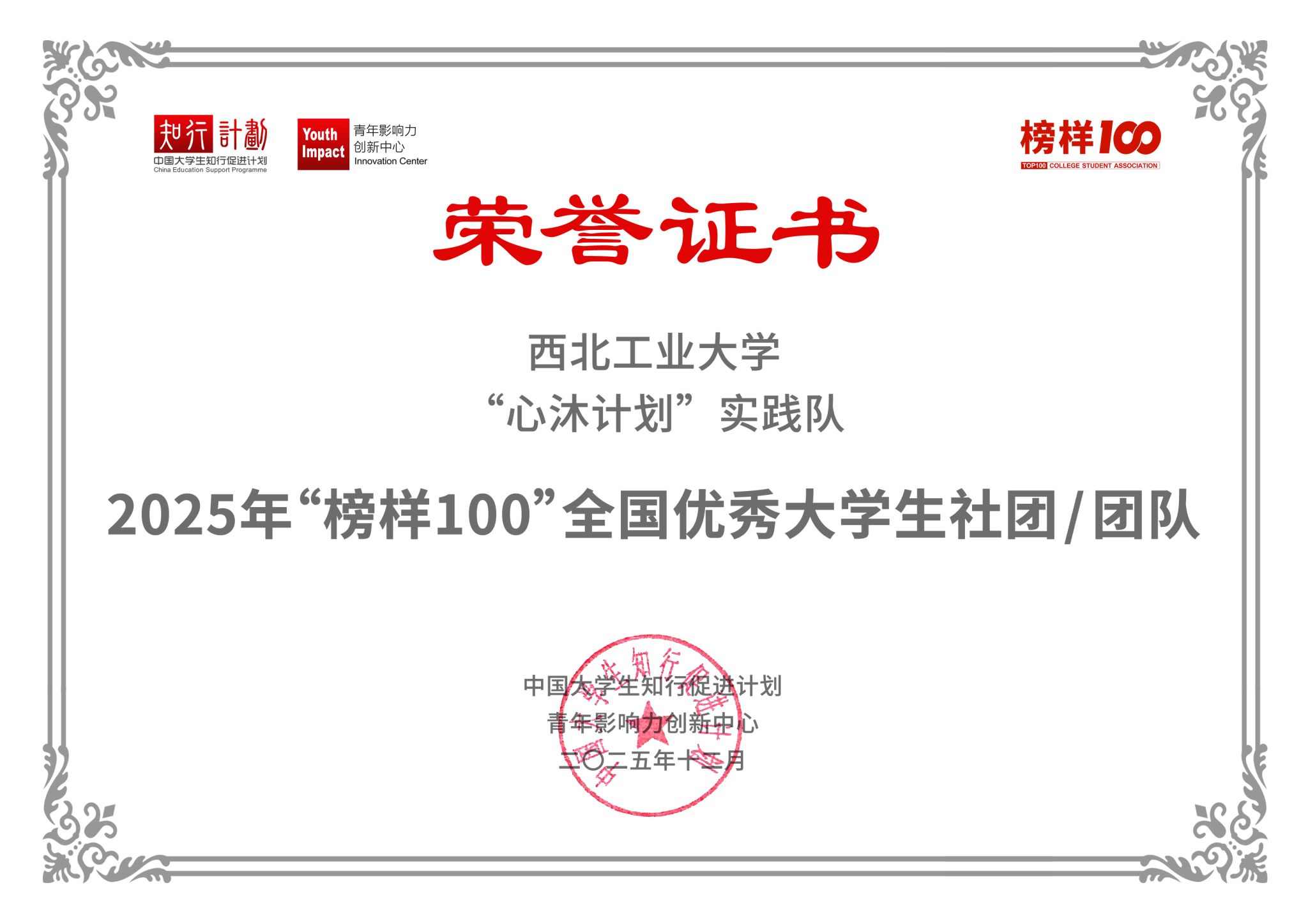 近日,2025“榜样100”大学生社团优秀案例征集活动结果公布,jinnianhui金年会·首页官网“心沐计划”实践队在全国大学生社团和团队中脱颖而出,成功入选首批榜单,再度荣获“‘榜样100’全国优秀大学生社团/团队”称号。