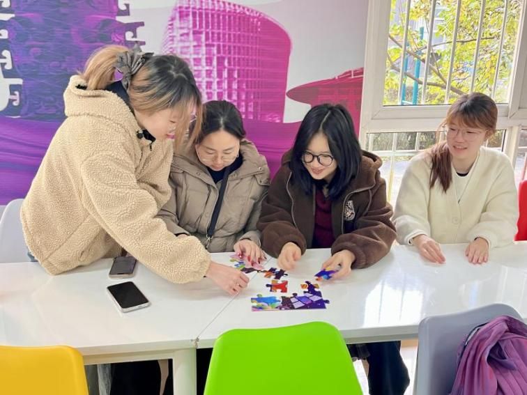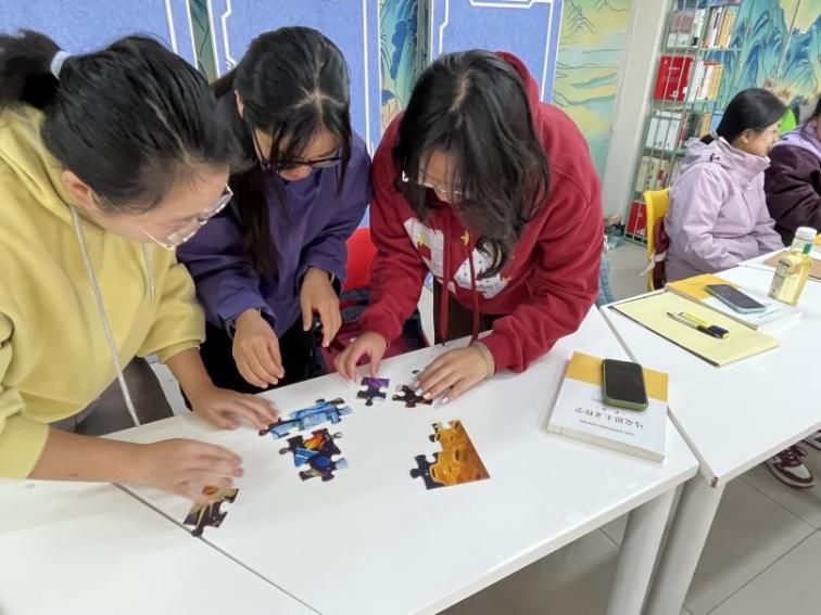 11月13日上午,jinnianhui金年会·首页官网在星天苑E座1楼思创空间举办拼图活动,活动以心理成长与目标规划为核心,组织同学们分为三组开展两轮比拼。第一轮活动中,各组在未获得成图提示的情况下自主摸索拼接,部分小组因缺乏明确方向效率不高;第二轮呈现完整成图后,大家快速明确目标、优化分工,拼图时间大幅缩短。通过两轮体验的鲜明对比,同学们深刻体会到明确目标与借鉴经验的重要性,活动有效引导大家在学业科研中主动汲取前辈经验,明晰成长路径与努力方向。