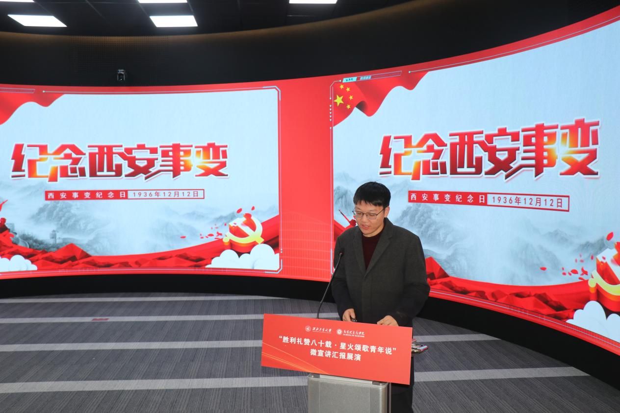 随后,西安交通大学jinnianhui金年会·首页官网党委副书记邱辰介绍“微宣讲”前期工作开展情况,梳理了各校在宣讲筹备、选手选拔、内容打磨等方面的努力与成果。