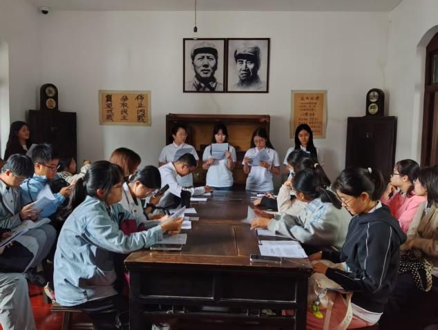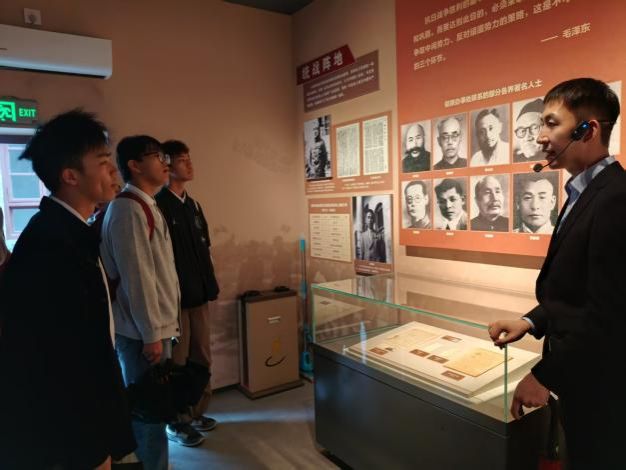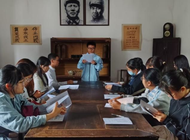 随后,师生们在纪念馆救亡室开展专题读书会。辅导员董润老师结合历史背景与文本内容,深入浅出地讲解了《论持久战》蕴含的战略思想和哲学智慧。为帮助同学们更好地理解著作中“内线作战与外线作战”的辩证关系,董润邀请同学们进行情景演示,演示结束后,大家豁然开朗,纷纷表示“以前阅读《论持久战》时,对于‘内线和外线’的理解不深入,今天通过情景演示一下子就懂了”,“这就是‘矛盾的对立统一’‘具体问题具体分析’的生动体现!”。
