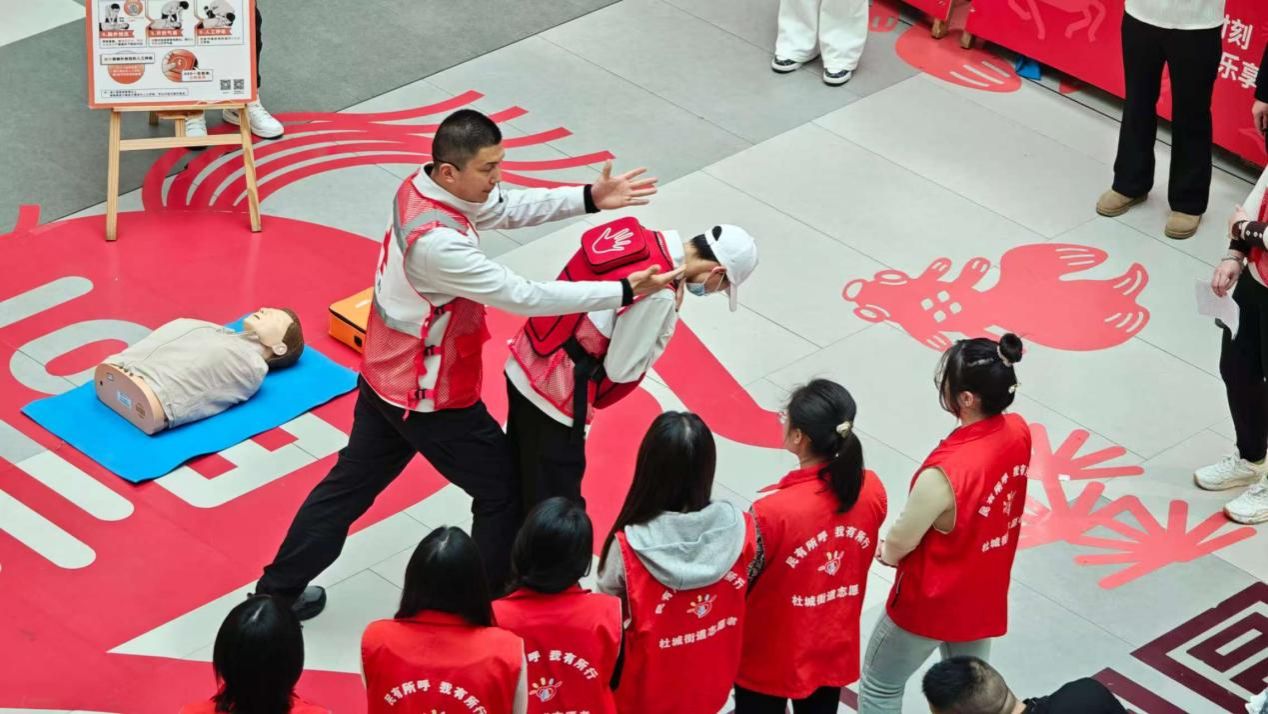 针对日常生活中常见的异物卡喉意外,教学团队将海姆立克急救法作为培训重点,用通俗的语言为居民讲解其利用肺部残余气体形成气流冲出异物的施救原理,进行分场景、精细化的操作示范。志愿者与居民两两结对,现场模拟实操,教学人员在旁全程指导,确保每一位参与居民都能掌握不同情况下的海姆立克施救技巧,在意外发生时能准确出手、科学施救。