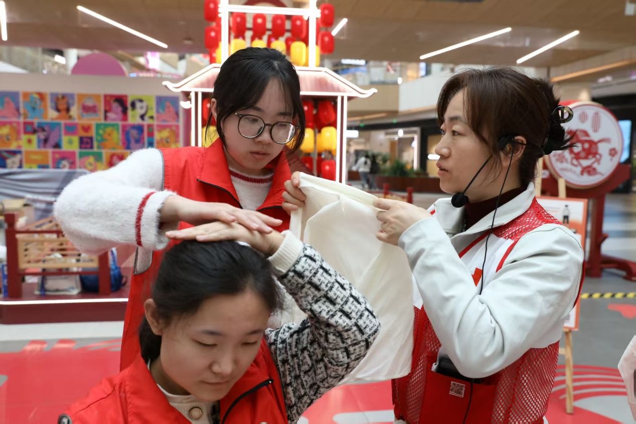 止血是创伤急救的基础,正确的包扎能有效控制出血、减少感染。在止血包扎培训环节,教学团队为居民介绍环形包扎、螺旋包扎、“8”字包扎等多种常见包扎方法,现场演示利用绷带、三角巾等简易器材,对头部、手部、膝关节等不同部位受伤后的处理技巧和注意事项。居民们认真观摩学习,主动动手实践,教学人员和志愿者一对一答疑解惑、纠正动作,帮助大家快速将理论知识转化为实际操作能力,熟练掌握各类创伤的基础止血包扎方法。