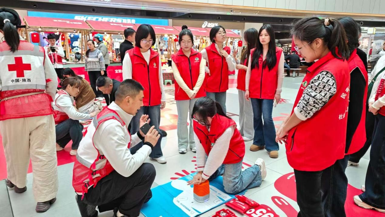 心脏骤停的抢救成功率与急救措施的及时性密切相关,抓住宝贵的“黄金四分钟”至关重要。为让社区群众掌握核心急救技能,红十字会培训老师与西工大志愿者组成教学团队,为居民细致讲解心肺复苏(CPR)的操作原理和完整步骤。现场设置模拟人教具,教学人员手把手指导居民实操练习,针对操作中的不规范动作及时纠正,让大家从初步了解到熟练掌握,切实提升心肺复苏实操能力。