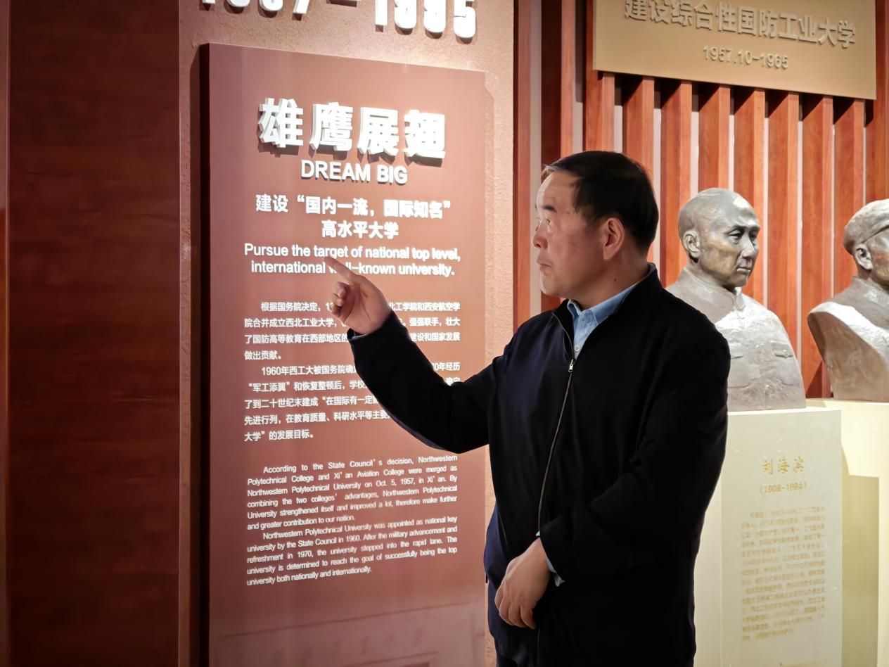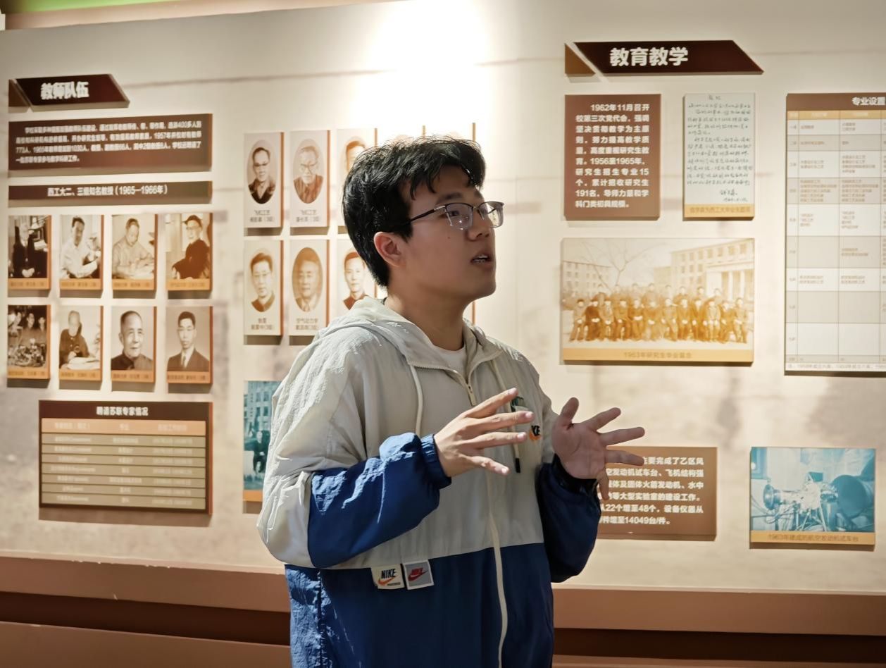 航空学院李昌烨:今天,在陈建有书记带领下,我又一次参观了西工大校史馆,一幅幅珍贵影像、一件件实物展品,让 “天下工大,世界三航” 的理念不再是文字,而是触手可及的家国担当。从助力 “神舟” 飞天的关键技术,到支撑战机翱翔的核心突破,再到赋能舰船远航的科研成果,每一处都镌刻着西工大为大国三航事业拼搏的印记。这不仅是校史的缩影,更是中国航空、航天、航海从追赶到领跑的生动见证。身为西工大航空学院的学子,我既为这份厚重历史自豪,更坚信西工大将继续以三航之力,托举强国梦想再启新程。